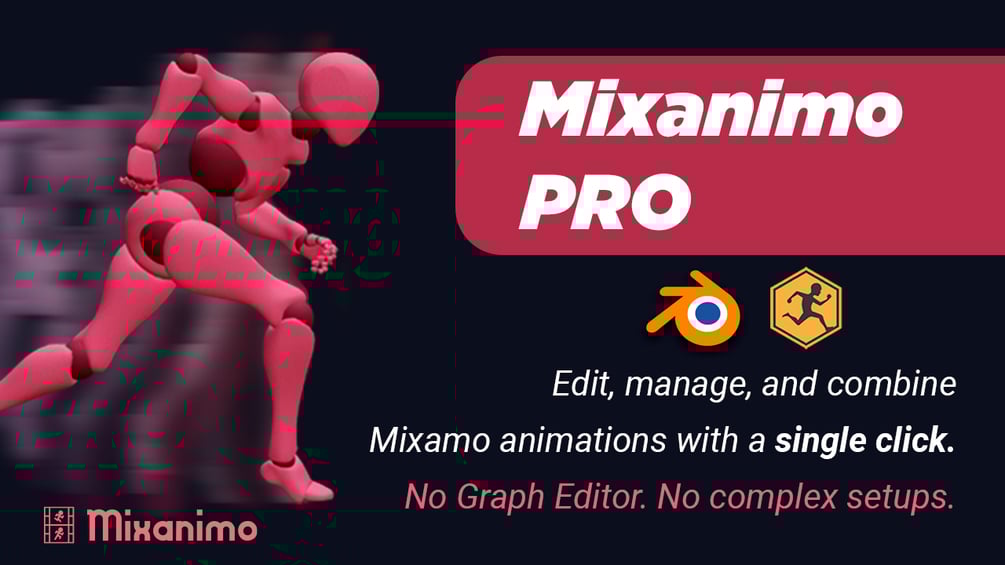 Mixanimo PRO is a Blender add-on that streamlines Mixamo animation workflows. Easily load, reorder, loop, and blend actions, bake them into a single clean track, and export optimized FBX files ready for Unity and Unreal Engine.